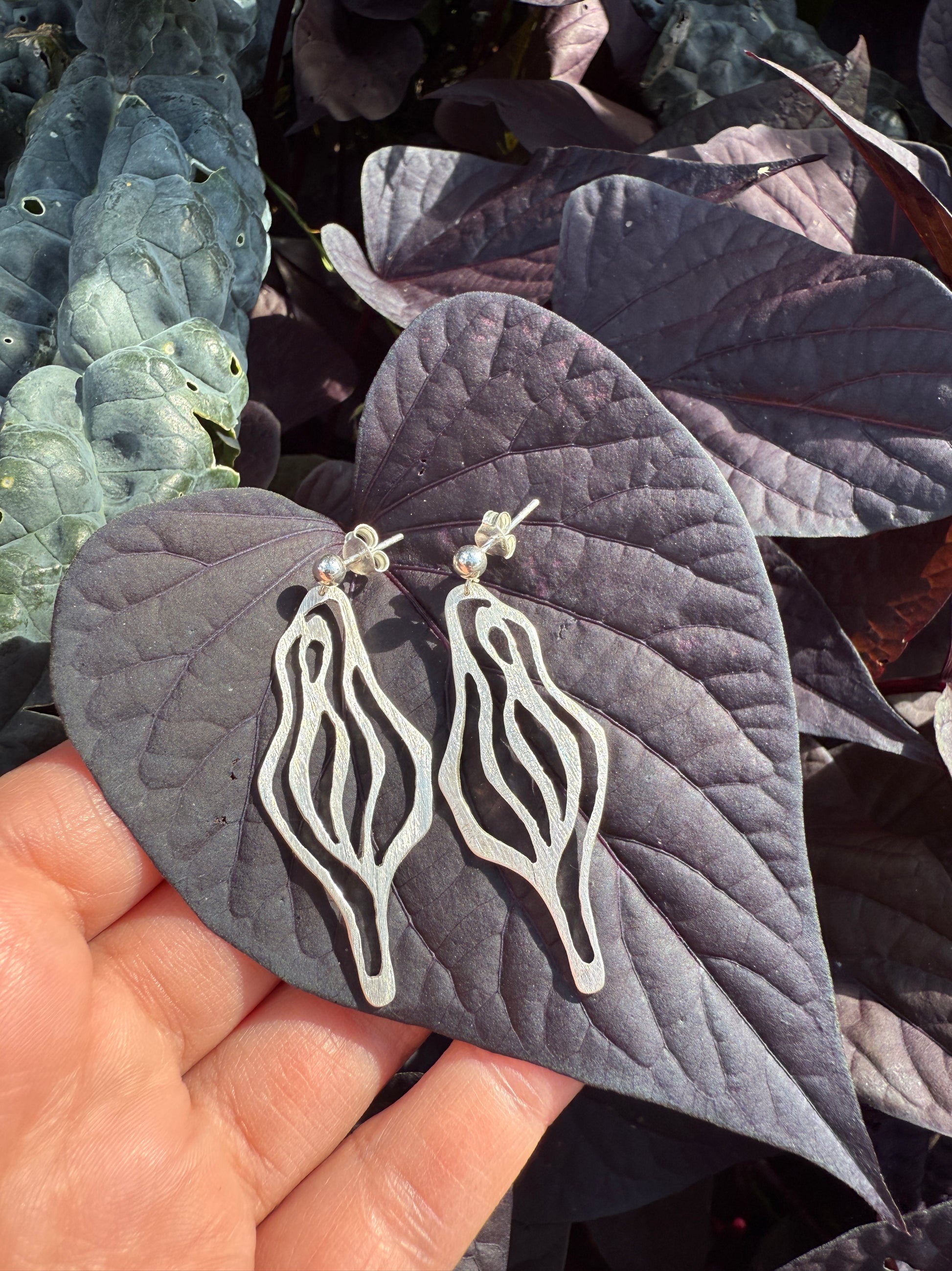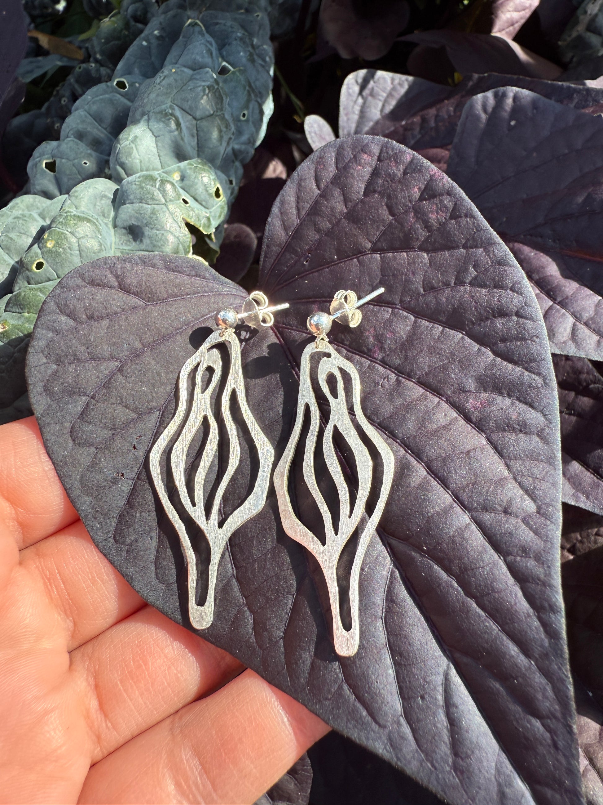 Mit Liebe in der dEtAiL-Werkstatt hergestellte Ohrhänger aus 925/000 Silber in Form einer Vulva.