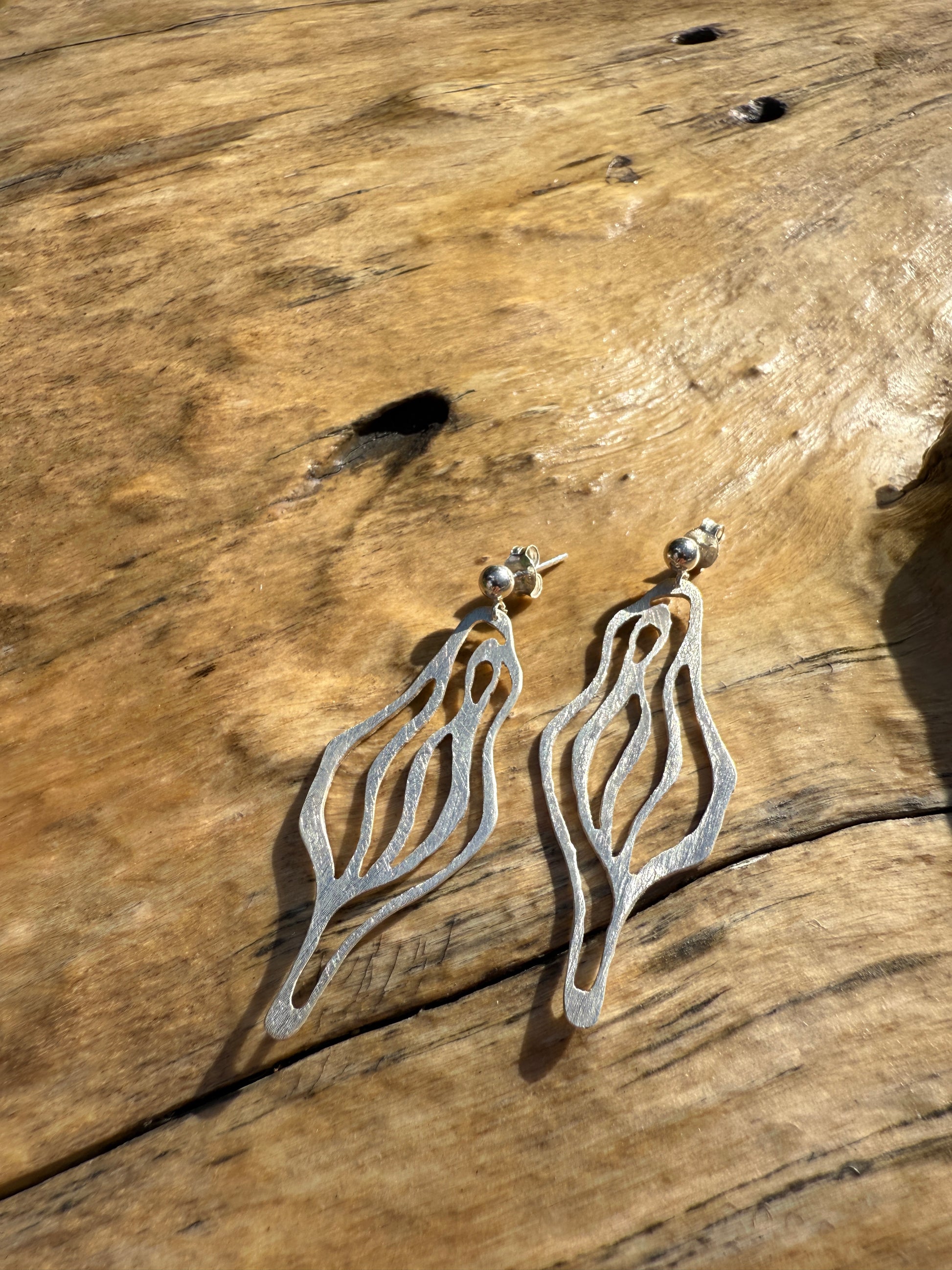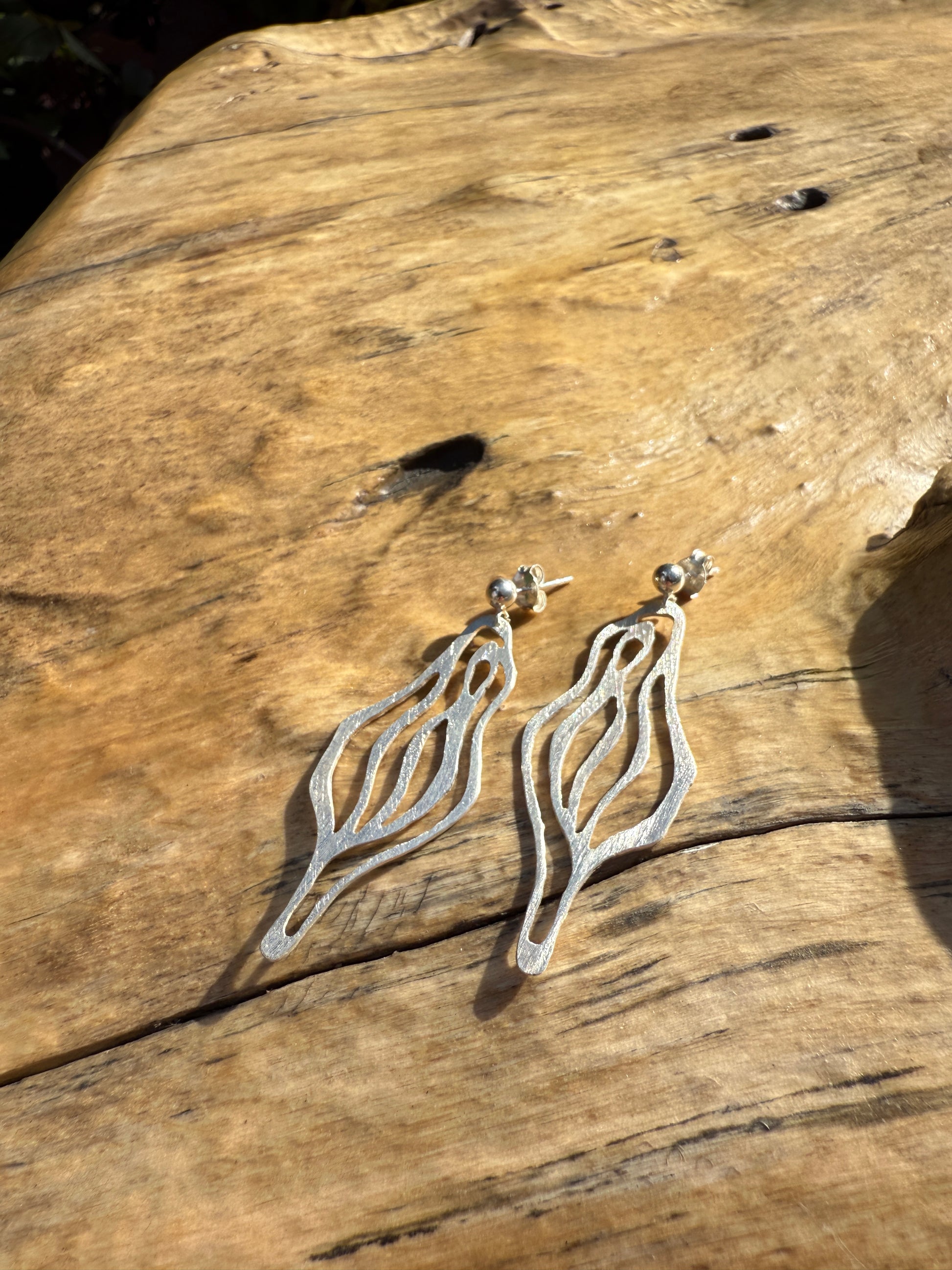 Die Ohrhänger wurden von Hand ausgesägt und der Verschluss ist im Ohrhaken integriert.